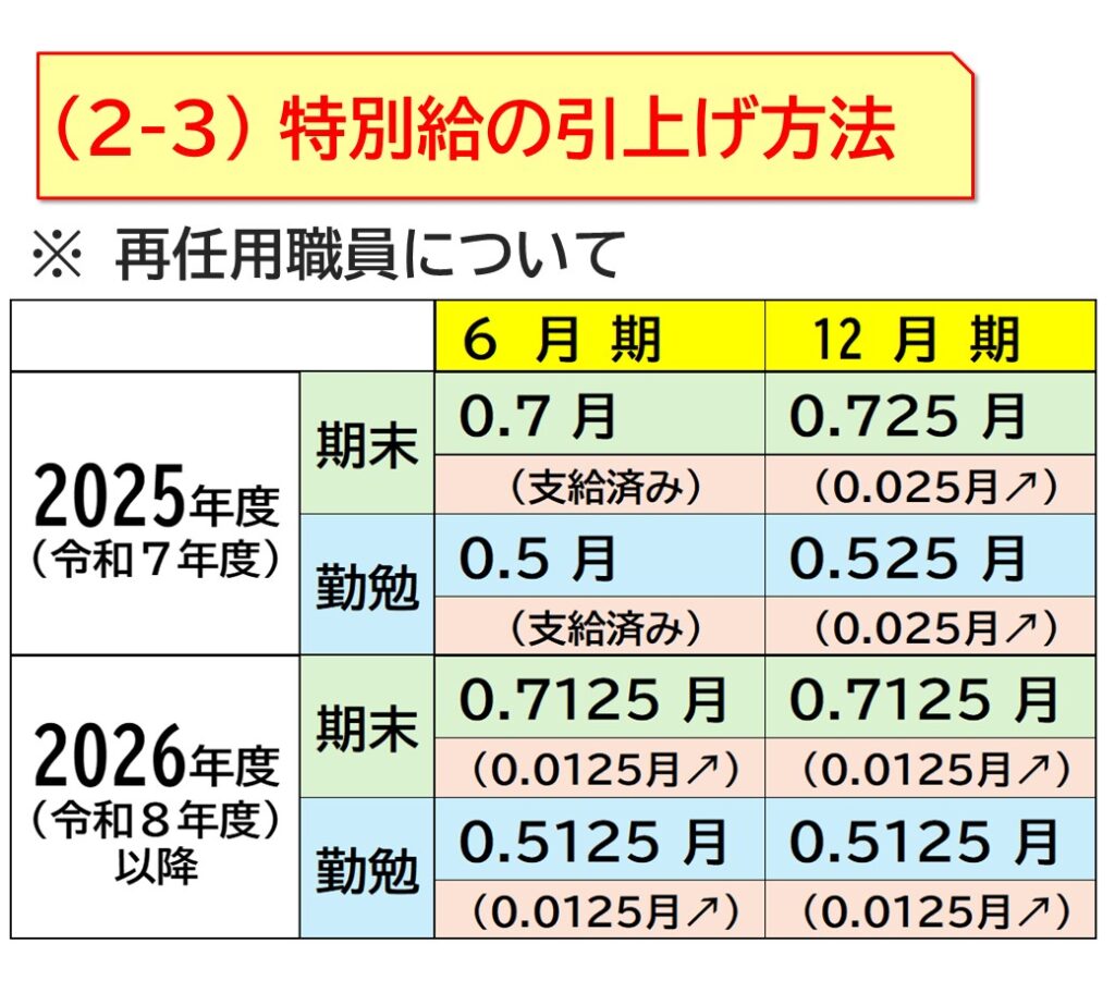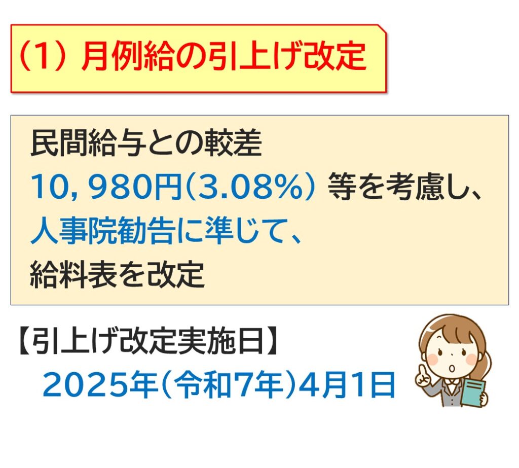 人事院勧告の改定内容に準じて、所要の改定。2025年(令和7年)4月1日実施。